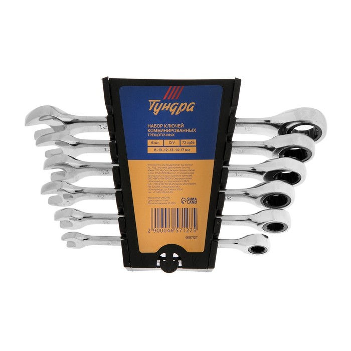 Набор ключей комбинированных трещоточных ТУНДРА, CrV, 72 зуба, 8 - 17 мм, 6 шт.