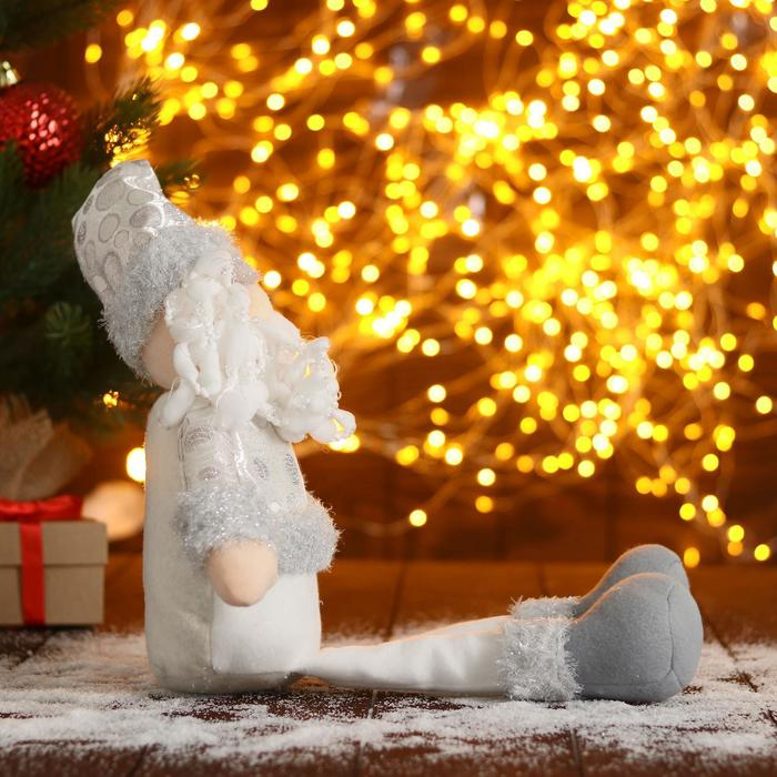 Мягкая игрушка "Дед Мороз в шапочке с кружочками-длинные ножки" 15х45 см, серебристо-белый