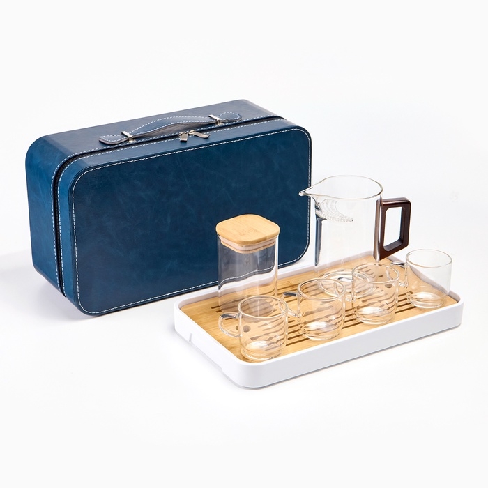 Набор для чайной церемонии 7 предметов, на 4 персоны - идеальный подарок для ценителей изысканного вкуса и традиций. Включает в себя все необходимое для проведения традиционной церемонии, которая позволит вам насладиться чаем, а также погрузиться в атмосферу спокойствия и релаксации. В набор входят семь предметов, которые помогут вам создать уютную обстановку и провести чайную церемонию на высшем уровне: Чахай (сливник) - это сосуд, который используется для слива настоявшегося чая в чашки. Он помогает равномерно распределить чай по чашкам и избежать перелива. Чайница (Ча Е Гуань) - это емкость для хранения чая. В ней чай сохраняет свой аромат и свежесть. Чабань (чайная доска или чайный поднос) - это низкий столик с поддоном для стекания воды и чая. На подносе также размещаются все предметы для чайной церемонии. Чабань изготовлена из бамбука и пластика. Четыре чашки предназначены для каждого участника церемонии. Они имеют удобную форму и размер, чтобы комфортно наслаждаться напитком. Все предметы подарочного набора упакованы в компактную сумку-чемодан, которая обеспечивает удобство хранения и транспортировки. Сумка изготовлена из прочного материала, который защищает набор от повреждений и загрязнений. Имеет удобную ручку и застежку-молнию.