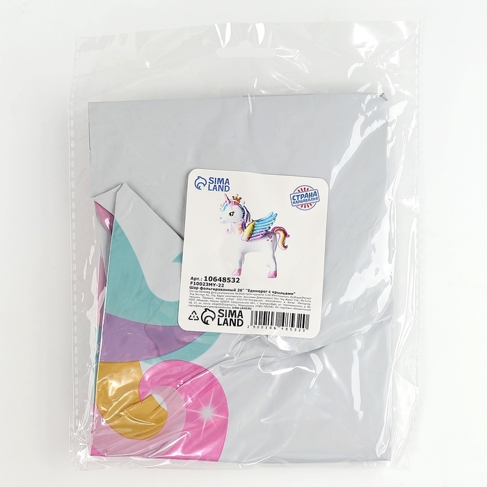 Шар фольгированный 26" «Единорог с крыльями», под воздух