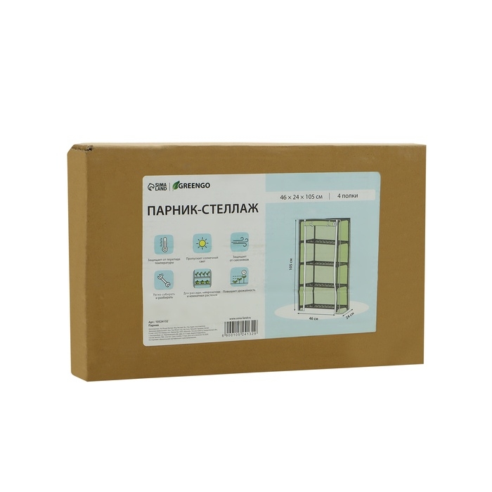 Парник-стеллаж 4 полки (сетка) 46*24*105 см, пвх пленка, мет. труба d-12 мм