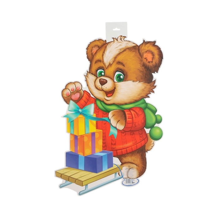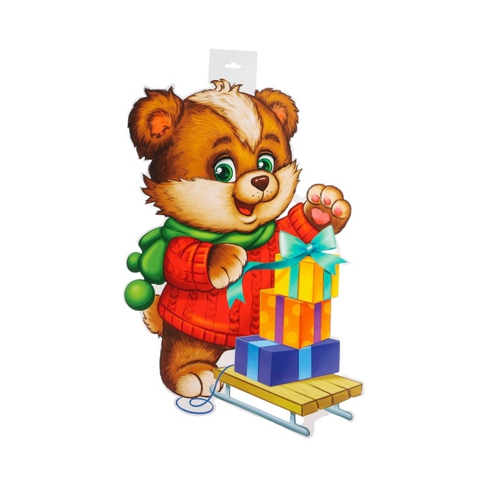 Плакат вырубной "Мишка с подарками" двухсторонний, 49 х 39 см
