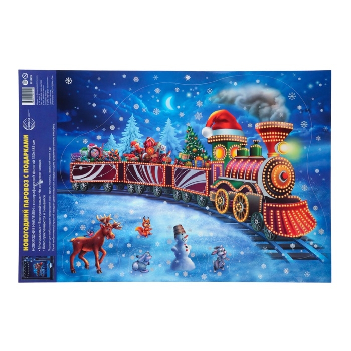 Набор наклеек новогодних "Новогодний паровоз с подарками" фольга, 48,5 х 33 см