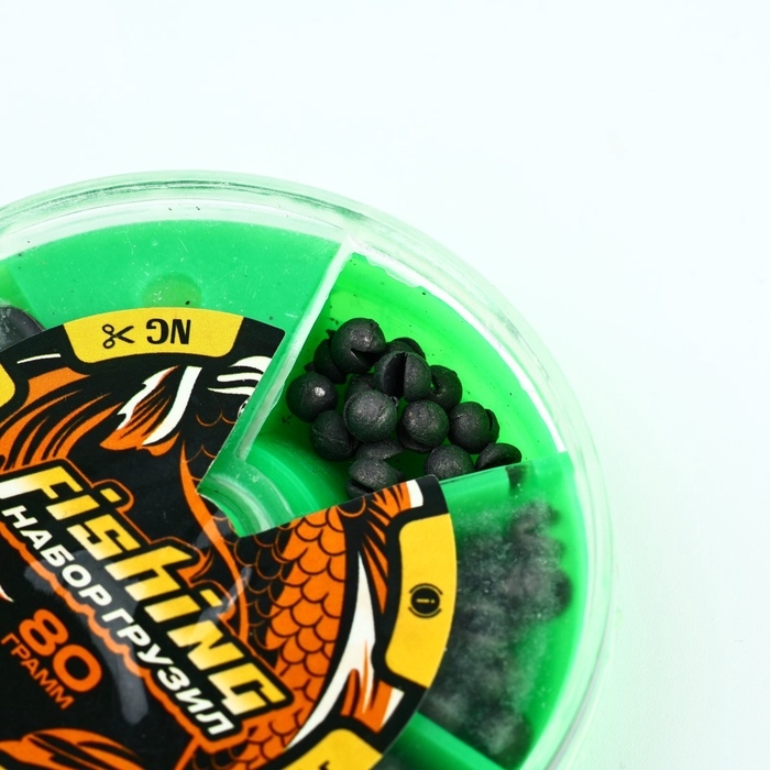 Набор грузил 80 г, стопор 1 шт. и кембрики 1 шт. «Набор рыболовных грузил», d = 7 см.