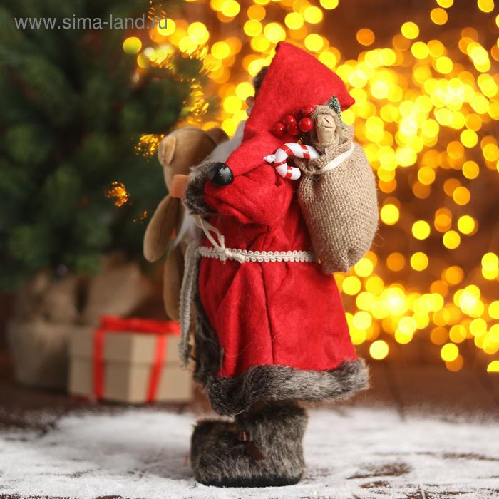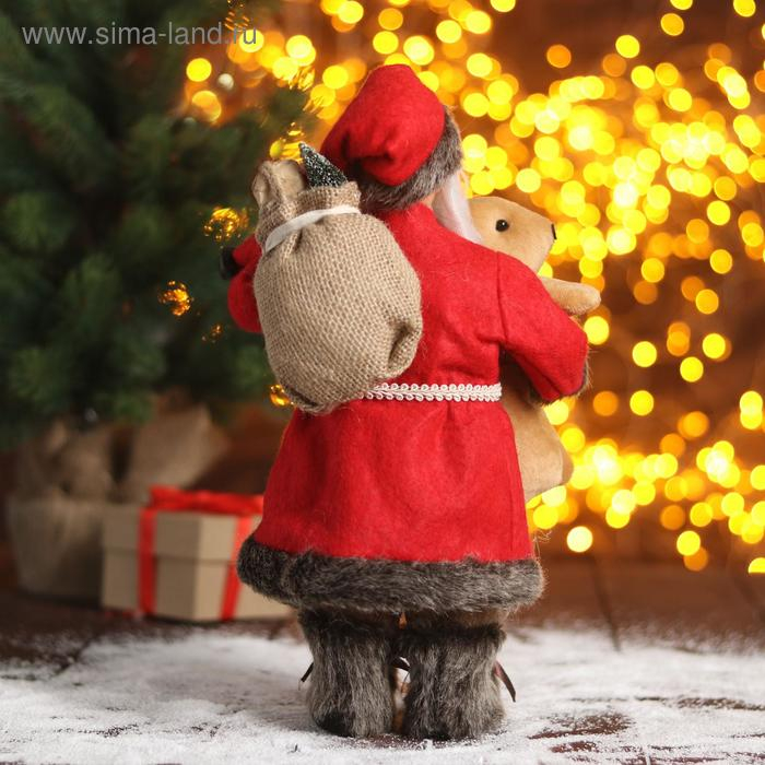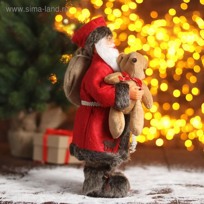 Дед Мороз "В красной шубке с мишкой" 30 см