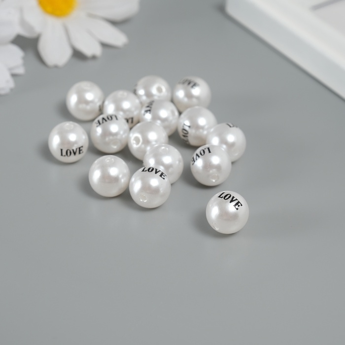 Бусина для творчества пластик "Жемчужный шарик - любовь набор 15 шт d=1,2 см
