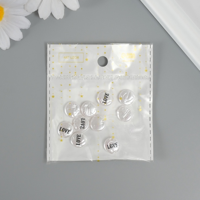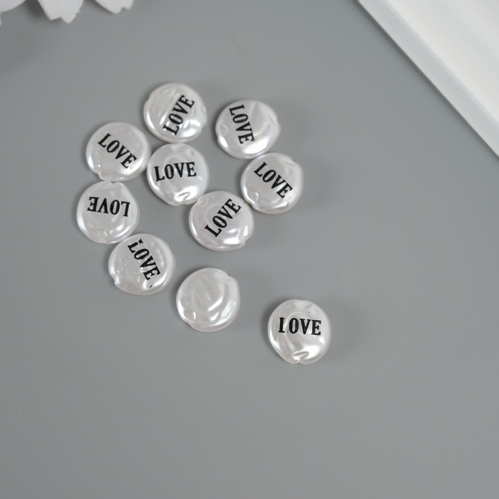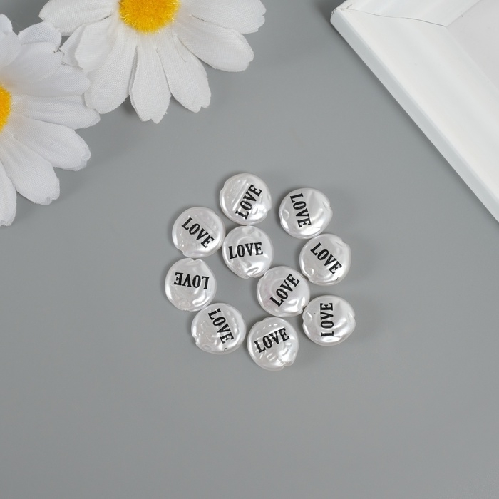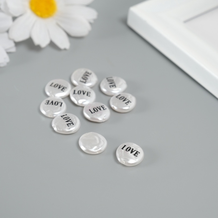 Бусина для творчества пластик "Жемчужный плоский круг - любовь" набор 10шт 0,3х1,2х1,2 см