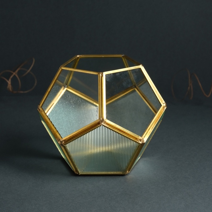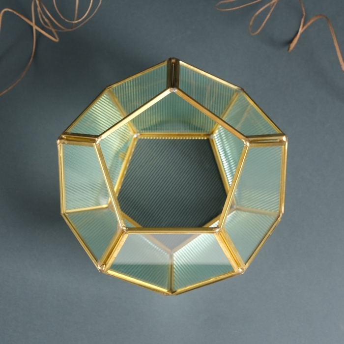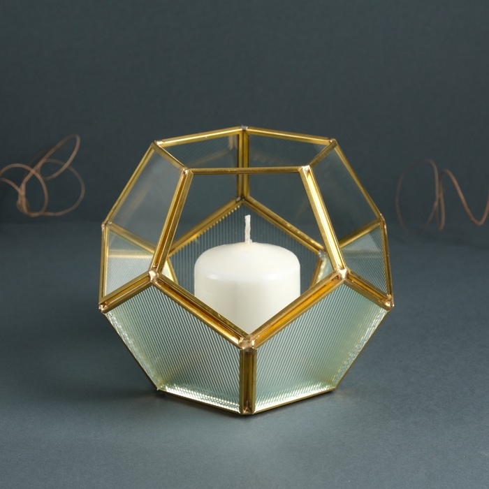 Подсвечник стекло, металл "Гранённый шар" прозрачный 16х16х14 см