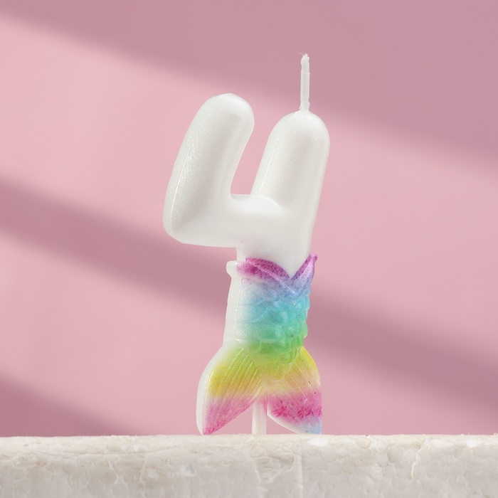Свеча для торта "Рыбка исполения желаний", цифра "4", белая