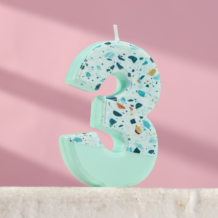 Свеча для торта "Мозайка", цифра "3", голубой