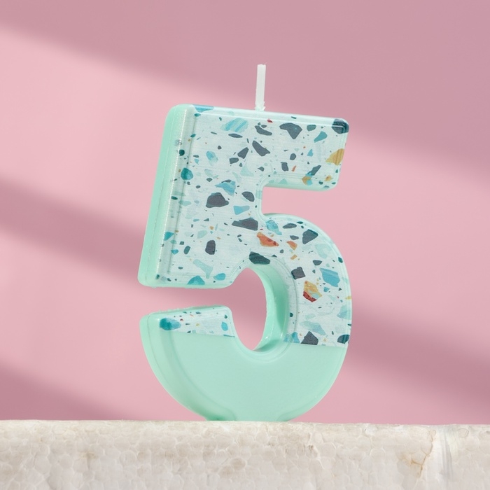 Свеча для торта "Мозайка", цифра "5", голубой