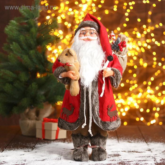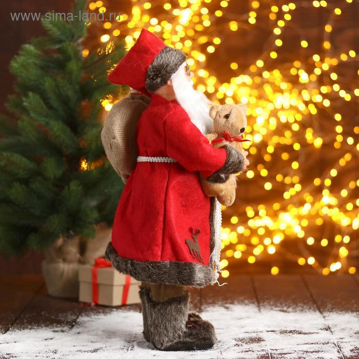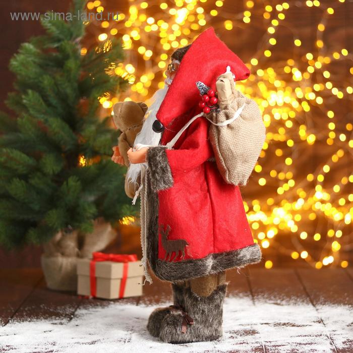 Дед Мороз "В красной шубке с мишкой" 45 см