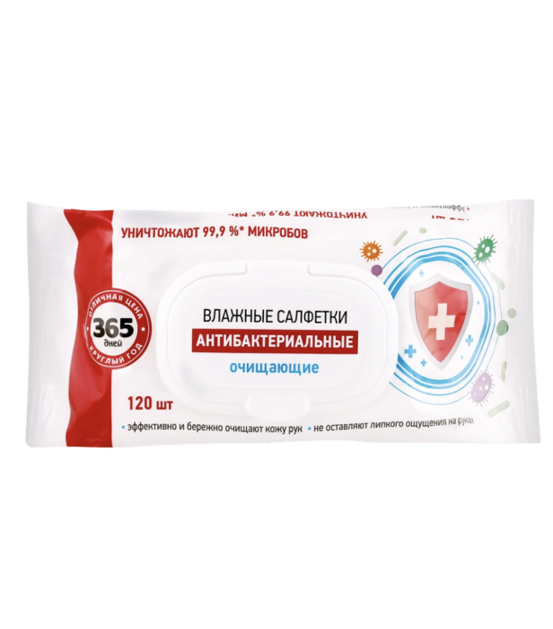 "365 дней" Влажные салфетки антибактериальные очищающие 120шт