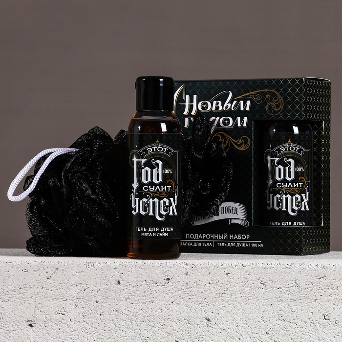 Набор "Год сулит успех", мини гель для душа и мочалка