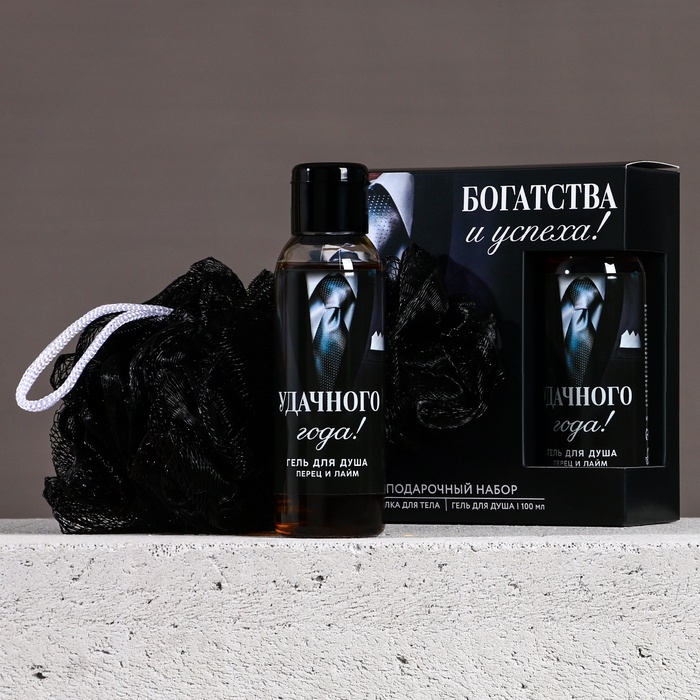 Набор "Успешного года", мини гель для душа и мочалка