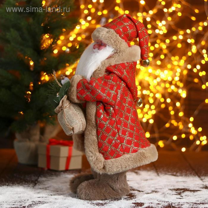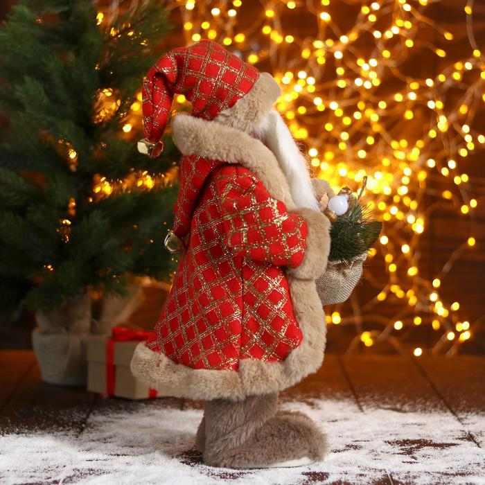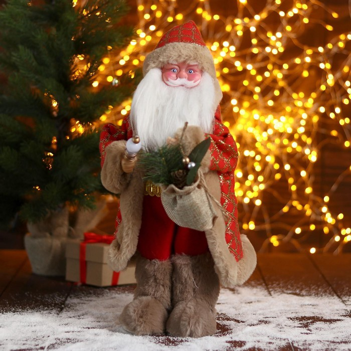 Дед Мороз "В красной шубке в клетку с подарками" двигается, 40 см