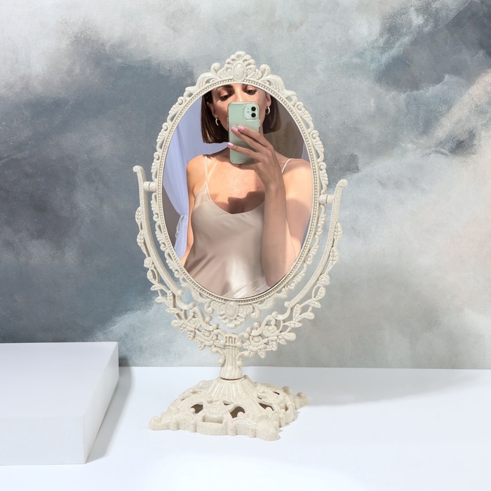 Зеркало настольное, двустороннее, с увеличением, зеркальная поверхность 13,5 × 18,5 см, цвет бежевый