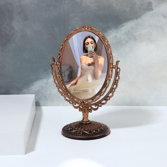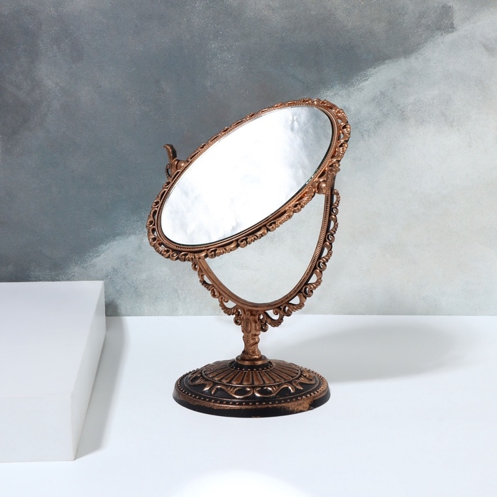 Зеркало настольное, двустороннее, с увеличением, зеркальная поверхность 8,5 × 12,1 см, цвет бронзовый