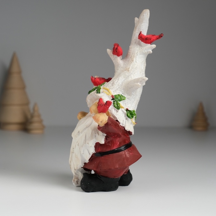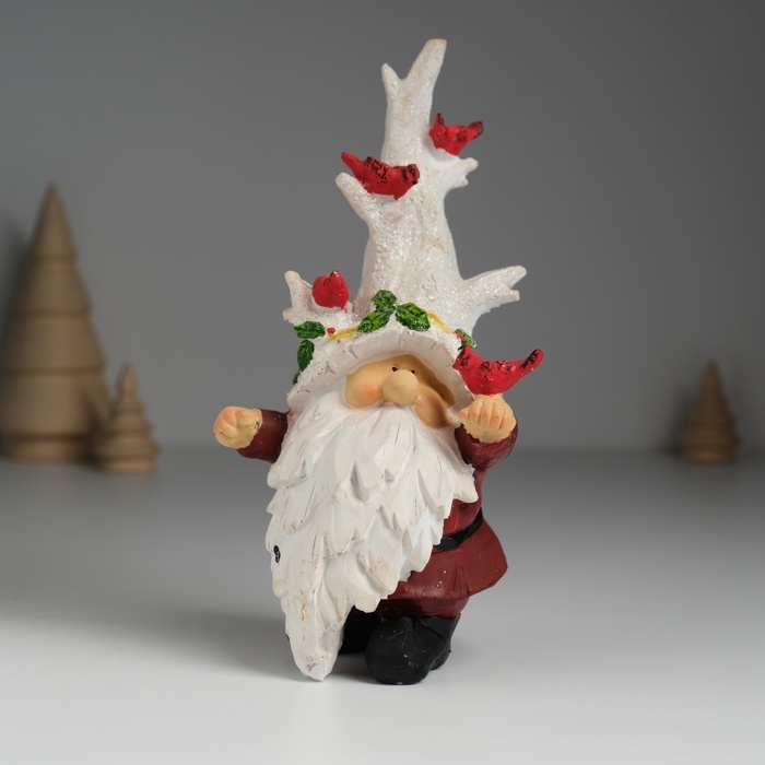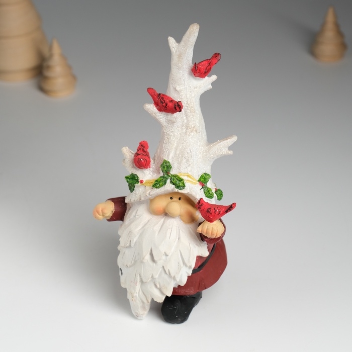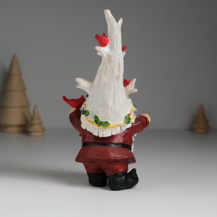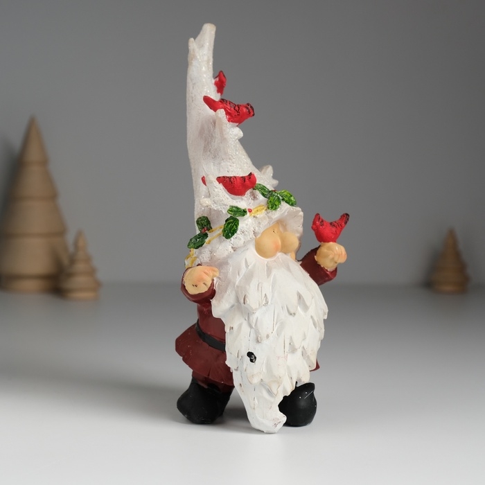 Сувенир полистоун "Гном в шапке деревом, с птичками" 8,5х7,5х17 см