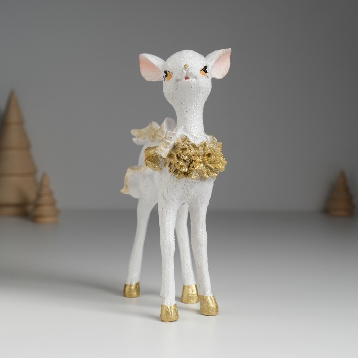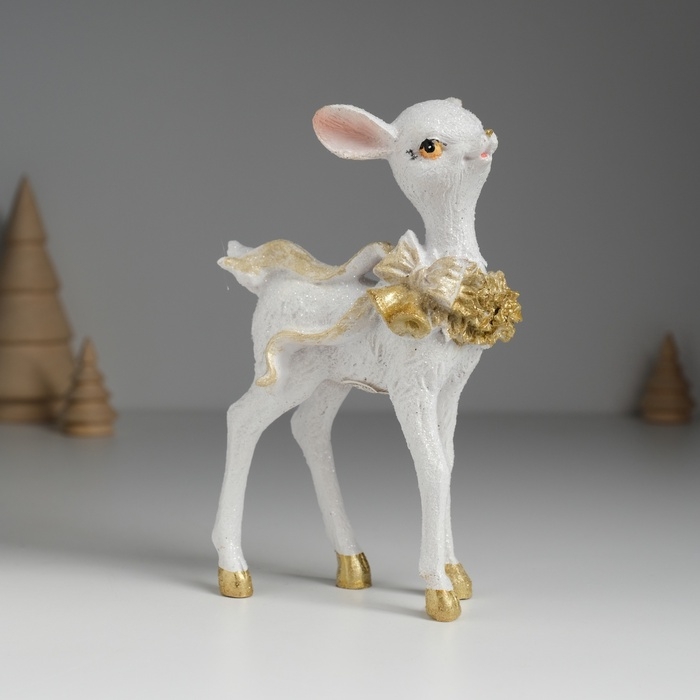 Сувенир полистоун "Олень белый с колокольчиком" 10х5х15 см