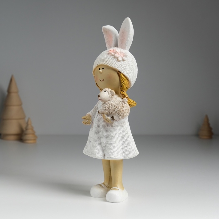 Сувенир полистоун "Девочка в шапке с ушками, с барашком" МИКС 8х6х22 см