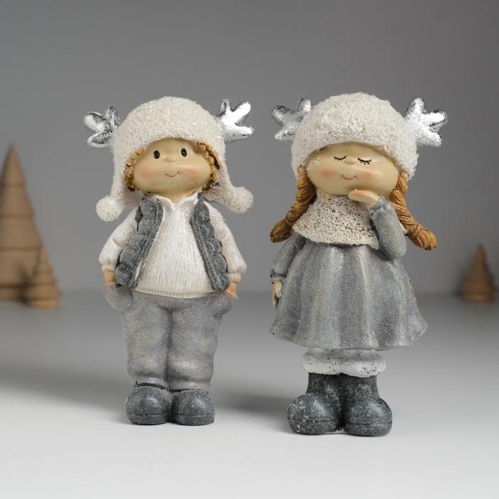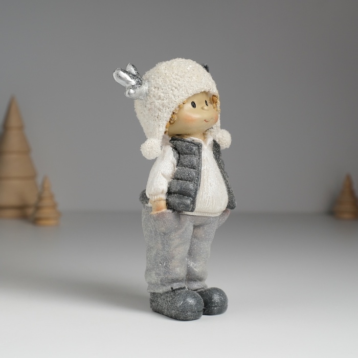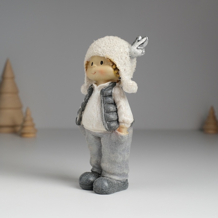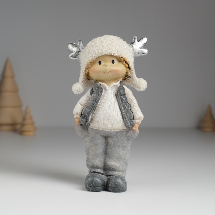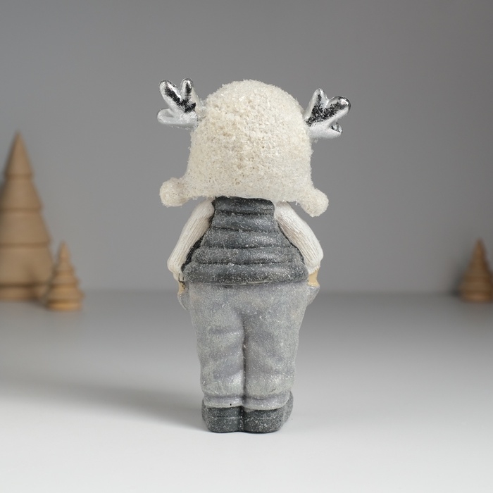 Сувенир полистоун "Малыш/Малышка в мохнатой шапке с оленьими рожками" МИКС 7х4х14 см