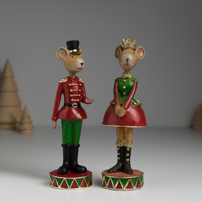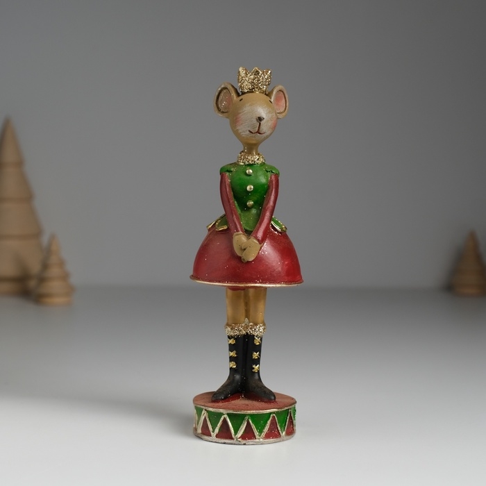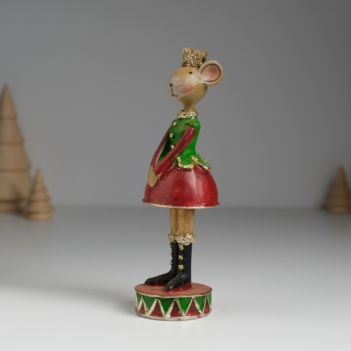 Сувенир полистоун "Мышка/Мышонок в красно-зелёном наряде" МИКС 4,5х4,5х14,5 см