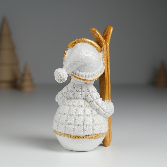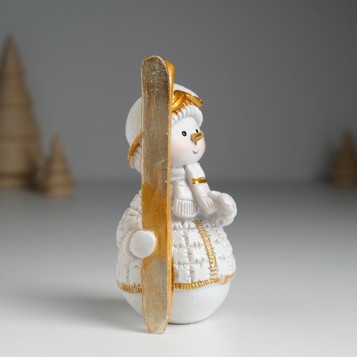 Сувенир полистоун "Снеговик лыжник в бело-золотом наряде" 5,5х5х10,2 см