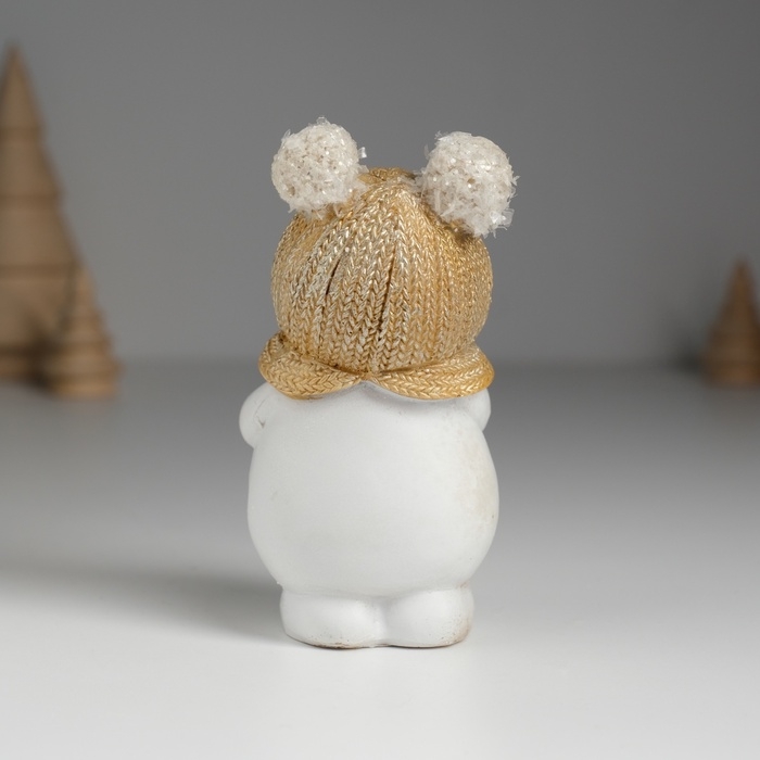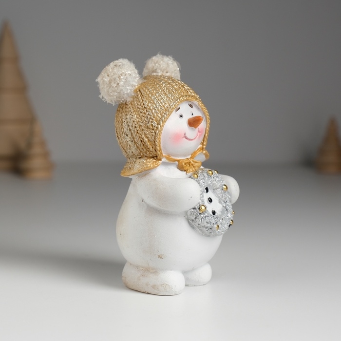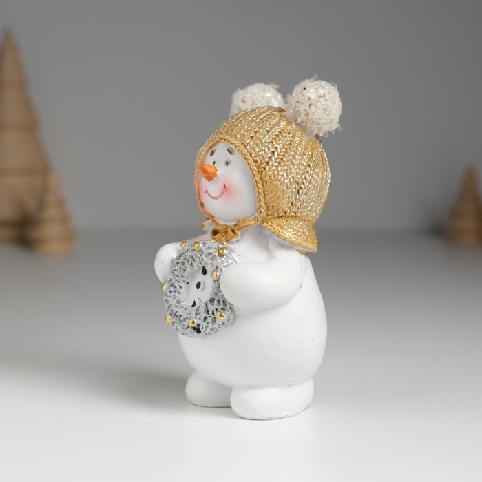 Сувенир полистоун "Снеговик в шапке с помпошками, с новогодним венком" 5,5х4х10 см