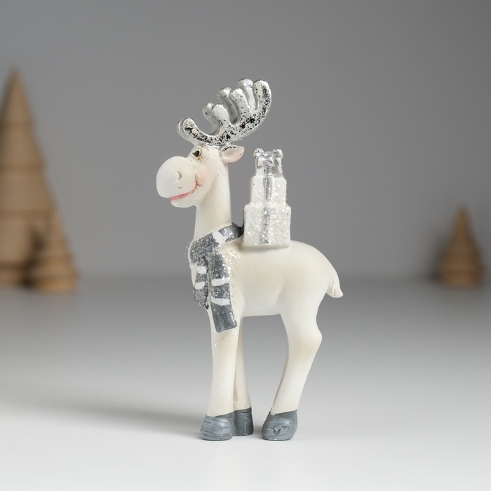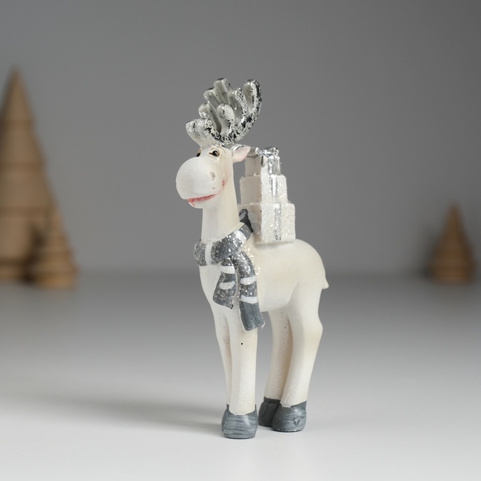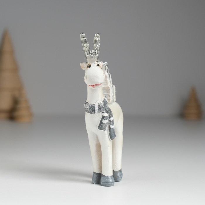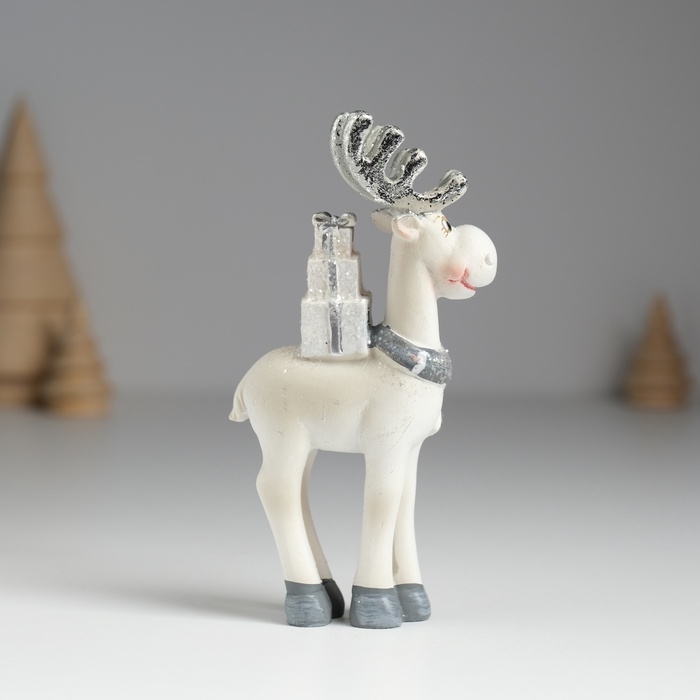 Сувенир полистоун "Олень с серебристыми рожками, с белыми подарками на спине" 5,5х2х11,5 см