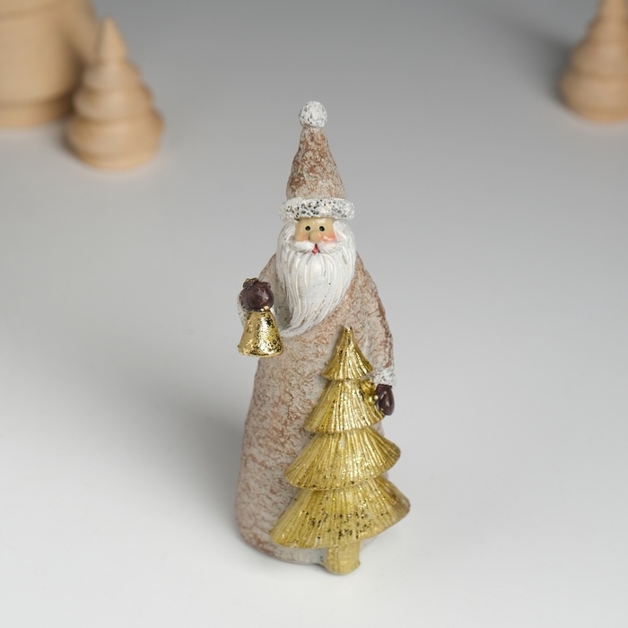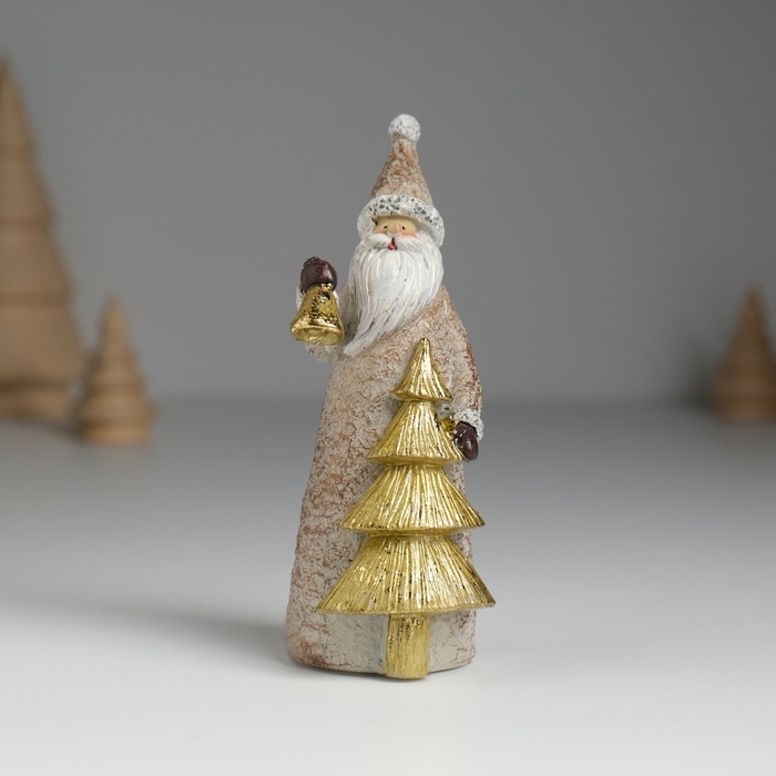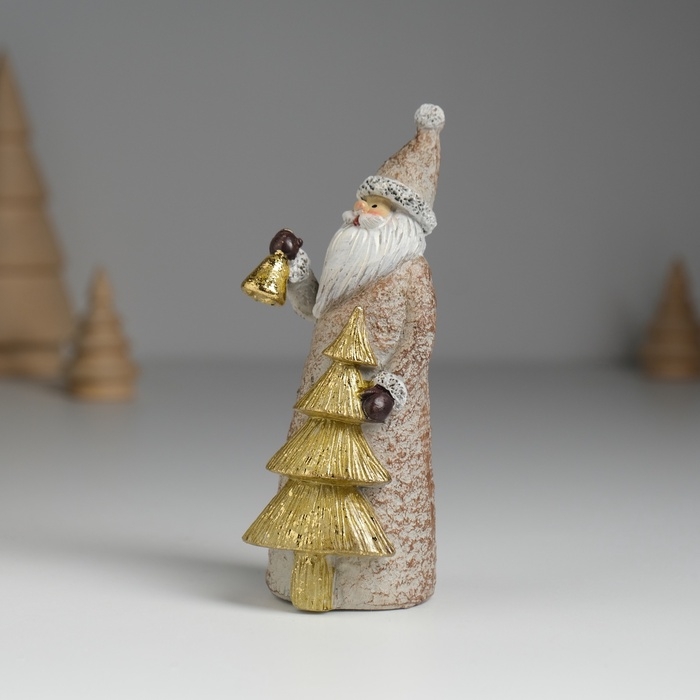Сувенир полистоун "Дед Мороз с золотой ёлкой, с колокольчиком" 4х4,5х10,8 см