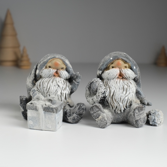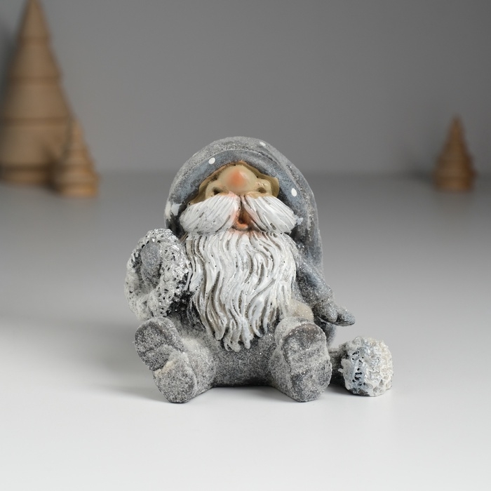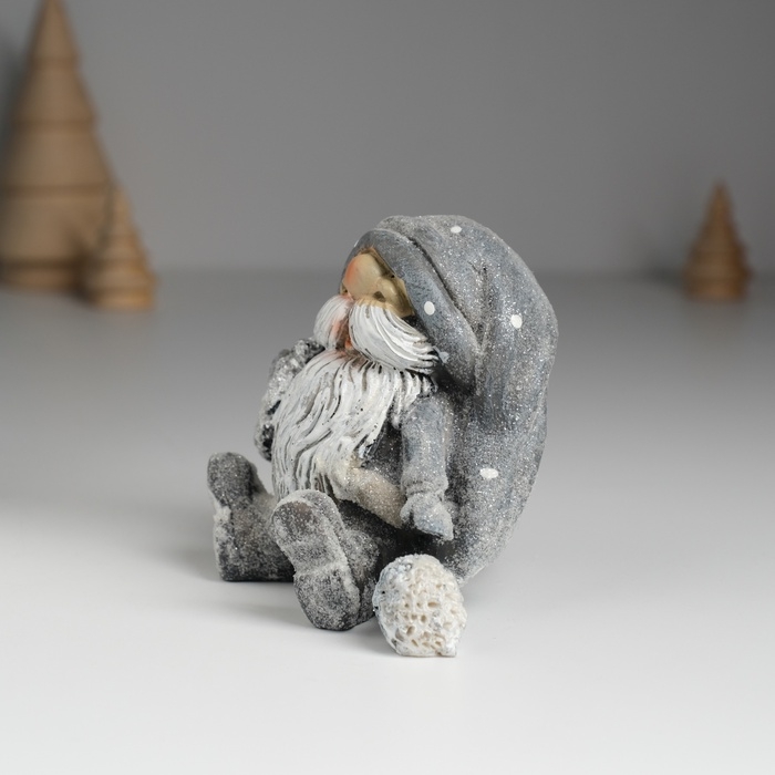 Сувенир полистоун "Гном в сером длинном колпаке с белой бородой" МИКС 8,5х7х7,2 см