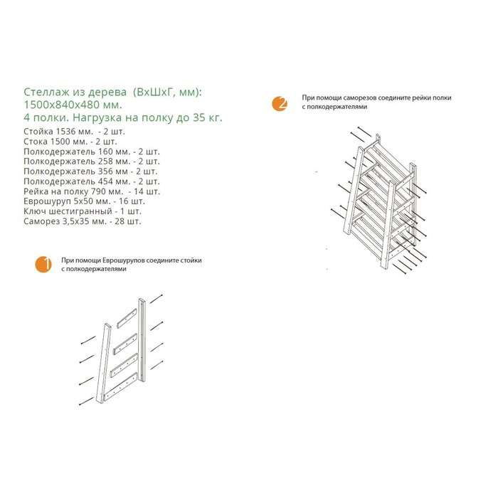 Стеллаж деревянный усиленный "Горка" 150х84х48см, 4 полки
