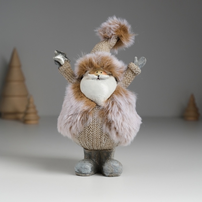 Сувенир полистоун "Дед Мороз в меховой шубе, со звездой" 9х6,5х14 см