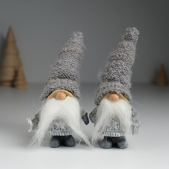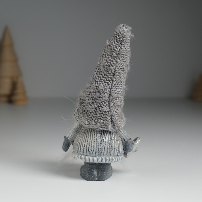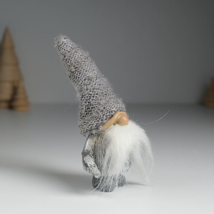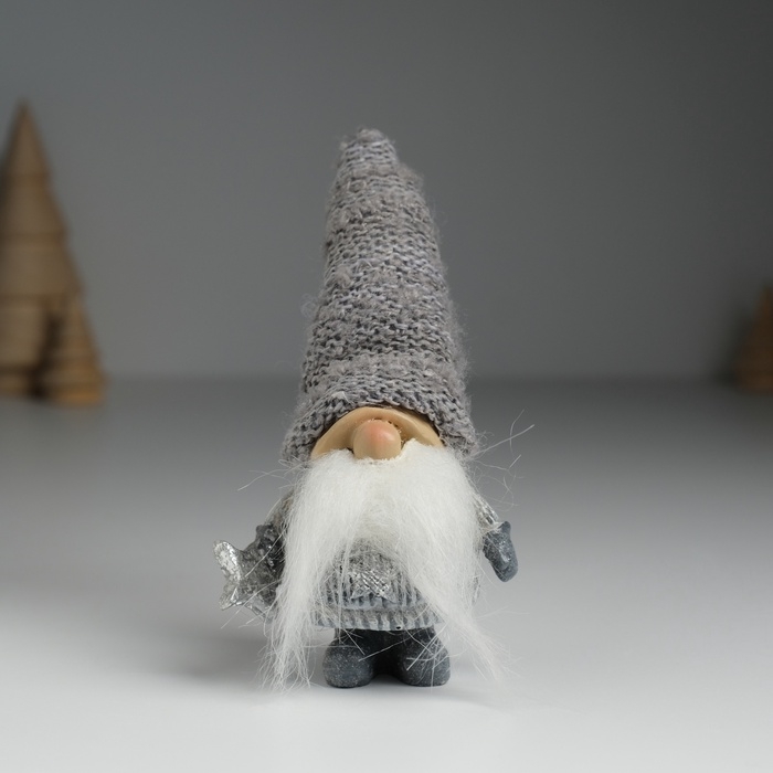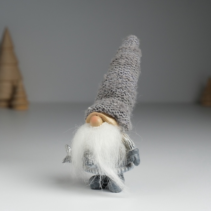 Сувенир полистоун "Дед Мороз в сером вязанном колпаке, со звездой" МИКС 5х3,5х13 см