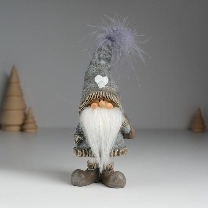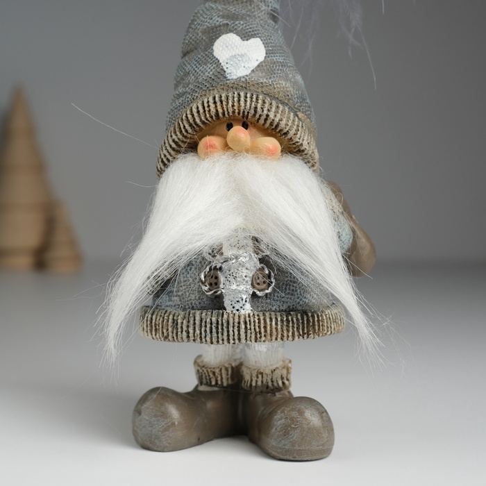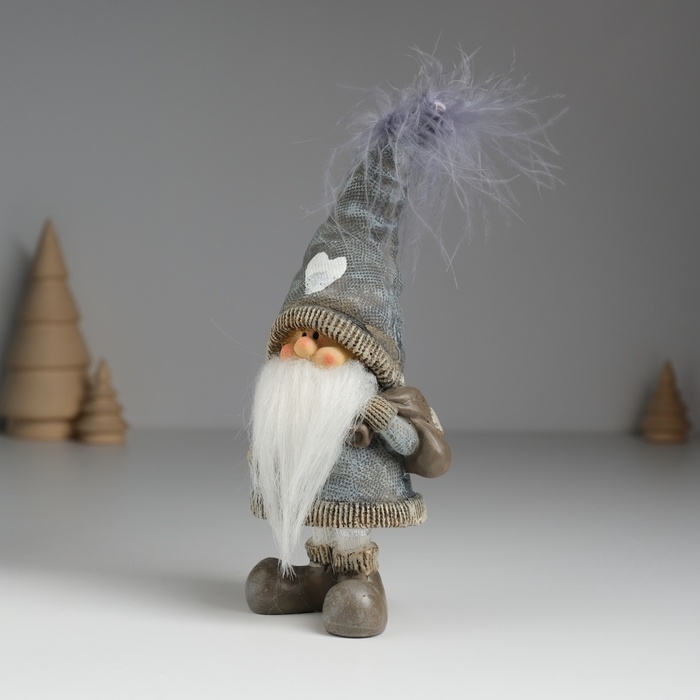 Сувенир полистоун "Дед Мороз в колпаке с сердечком, с мешком подарков" 6,5х5х16 см