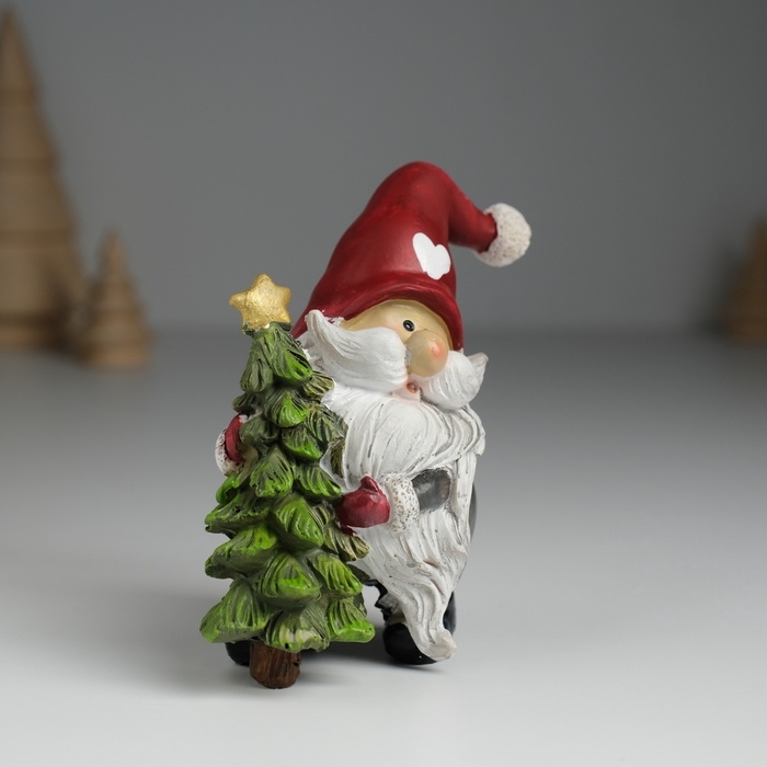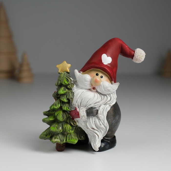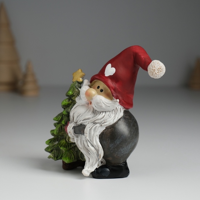 Сувенир полистоун "Дед Мороз в красном колпаке с сердцем, с зелёной ёлочкой" 6,5х4х9 см
