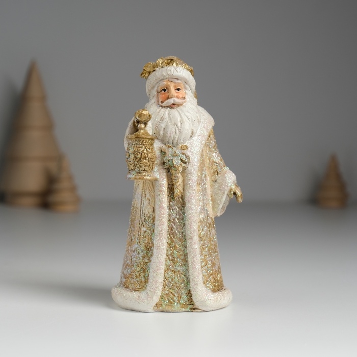 Сувенир полистоун "Дед Мороз в коричневой шубе с фонарём" 6х5х11,5 см