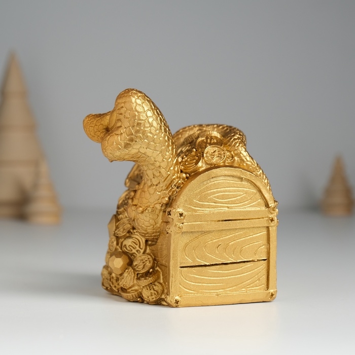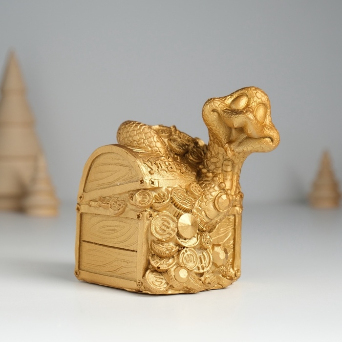 Копилка полистоун "Змея удачи с сундуком" 8х8х9,5 см