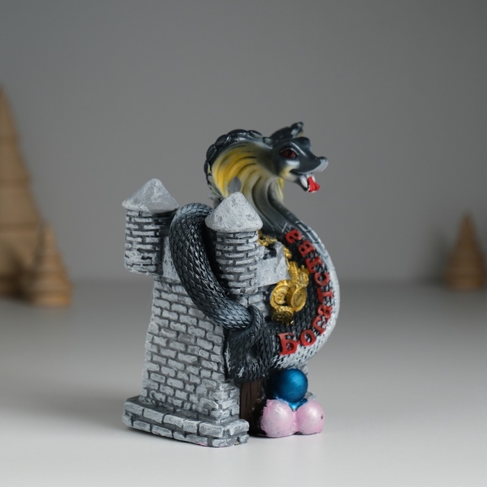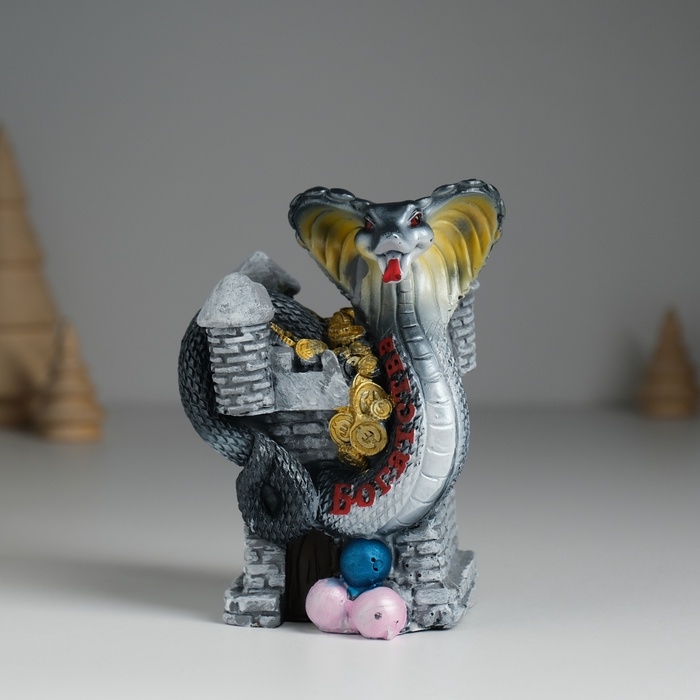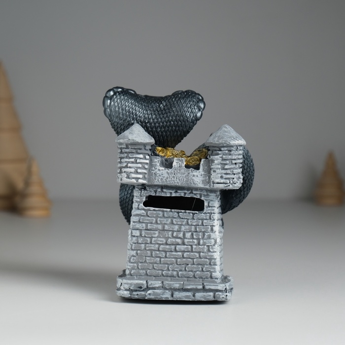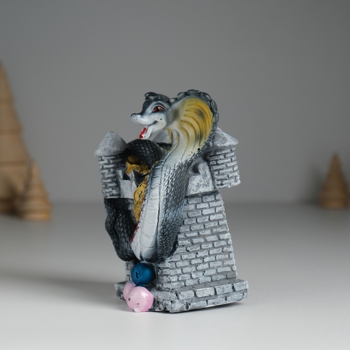 Копилка полистоун "Змея тёмная на башне" 7х6,5х10,3 см