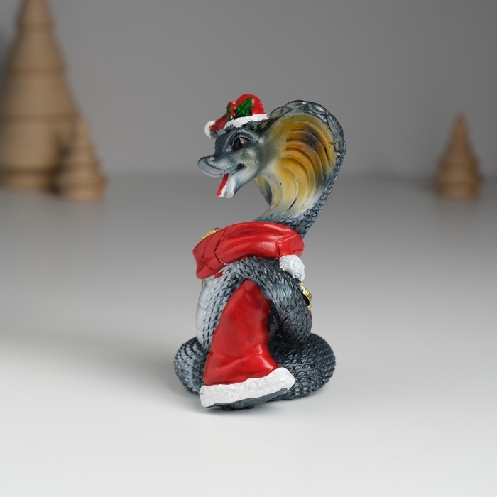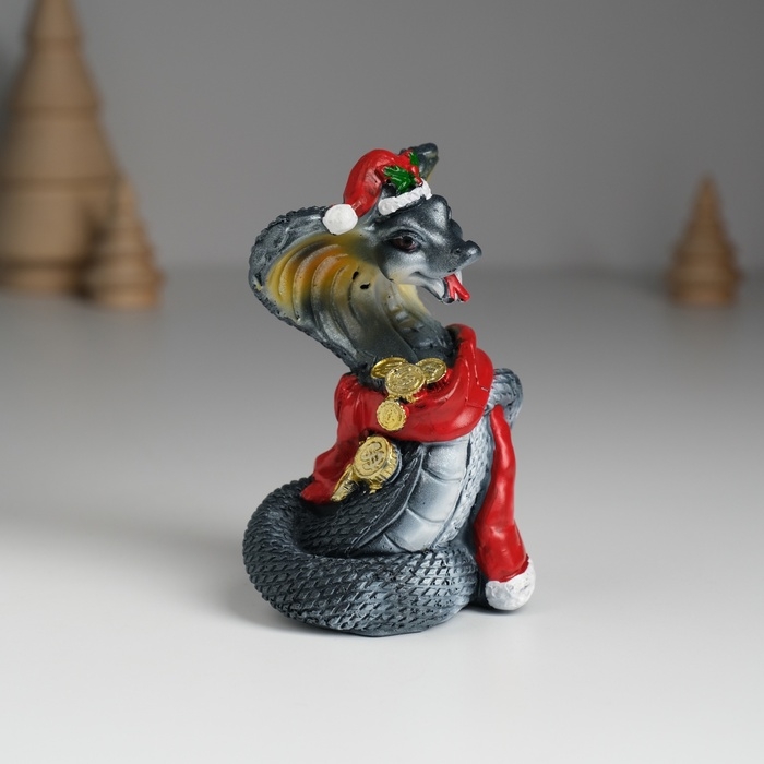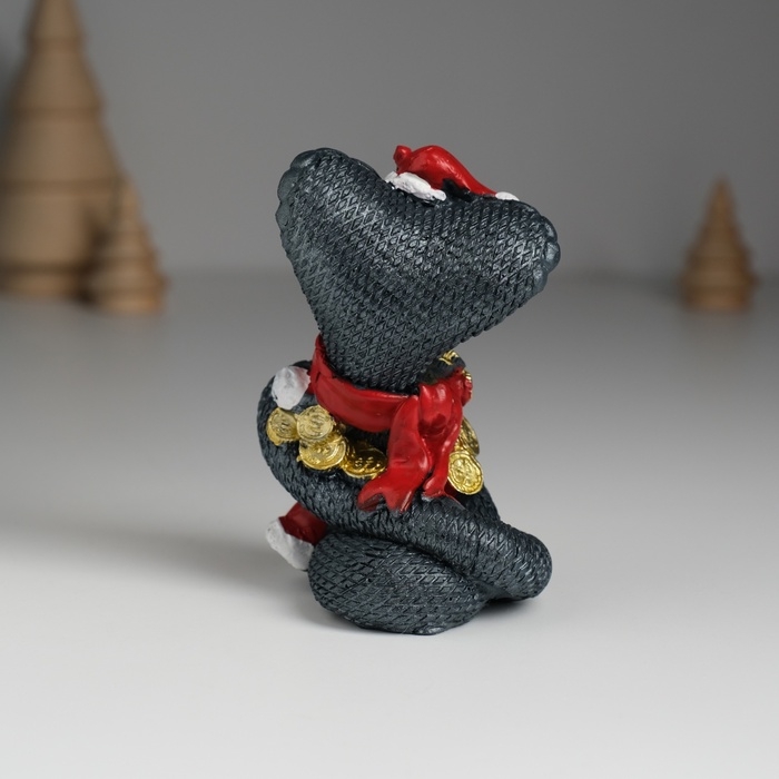 Сувенир полистоун "Змея тёмная в красной шапке и шарфике с монетками" МИКС 6,2х4,7х9 см