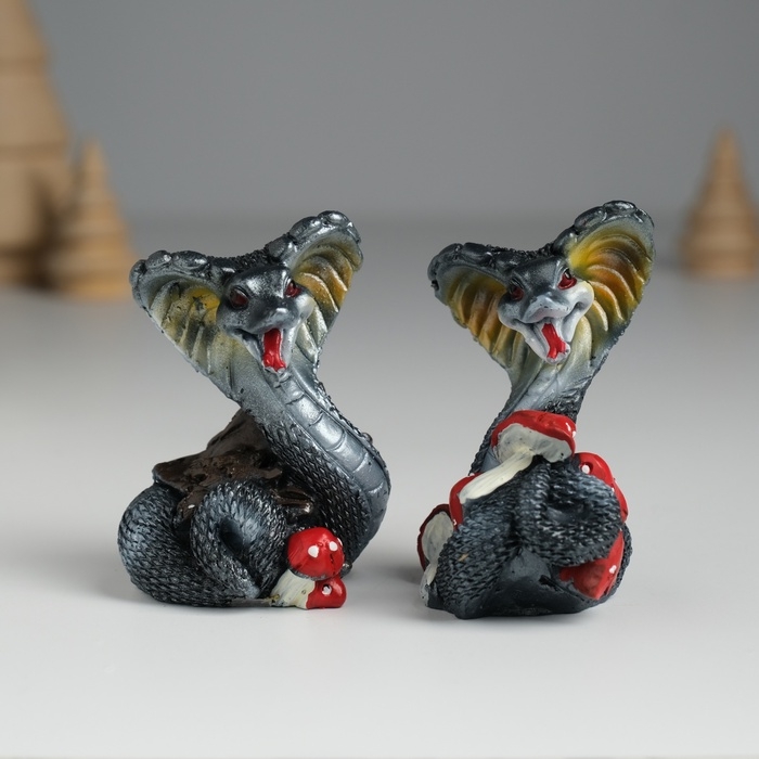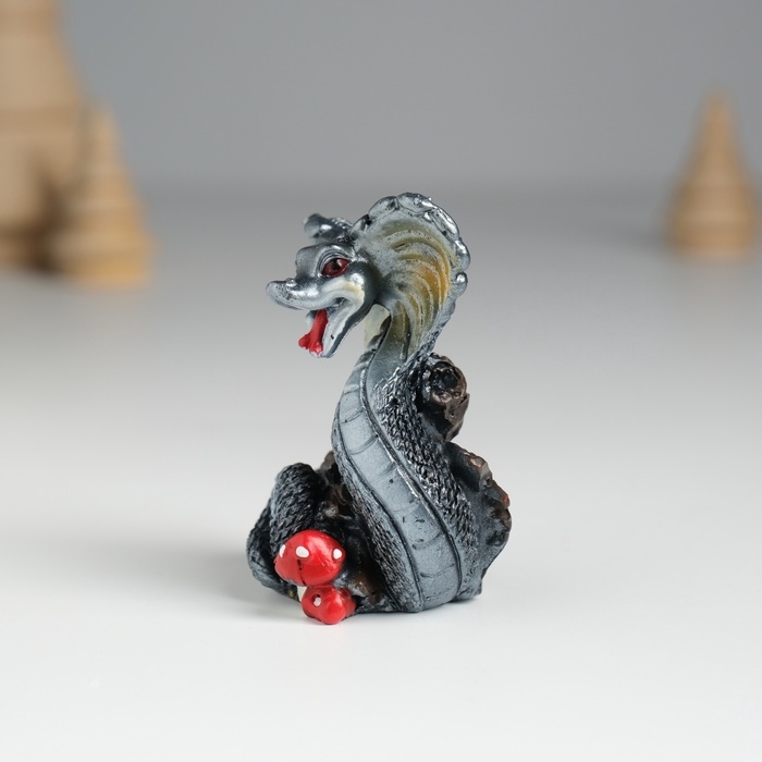 Сувенир полистоун "Змейка тёмная с мухоморами" МИКС 4,3х3,5х6 см