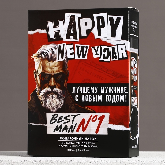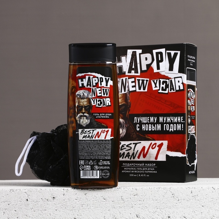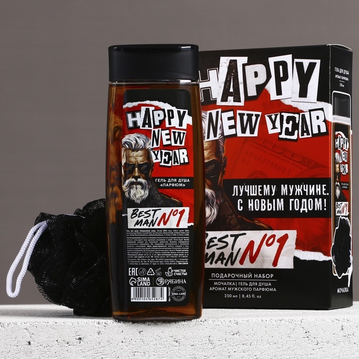 Подарочный набор, гель для душа 250 мл и мочалка для тела, Новый Год