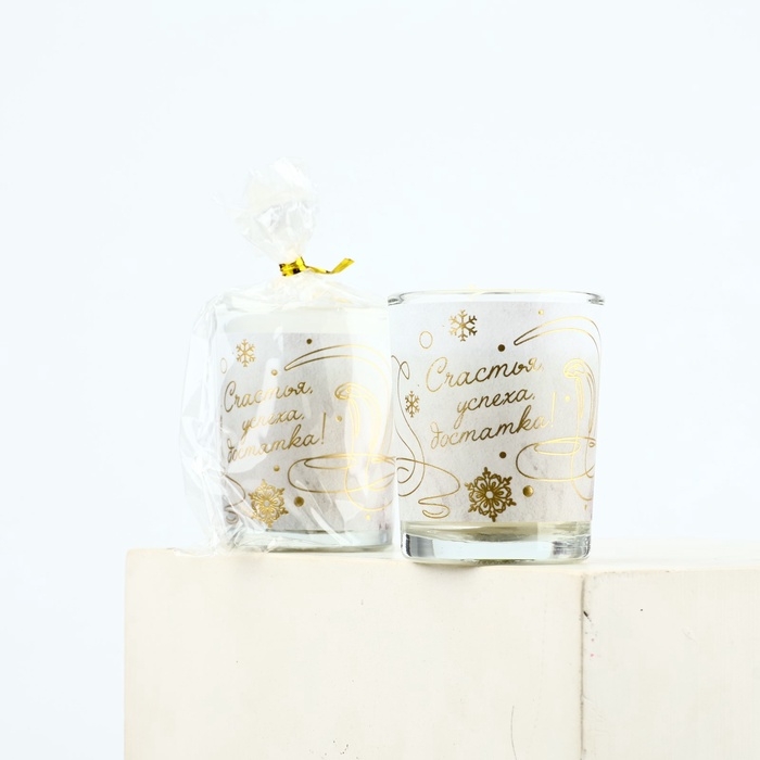 Свеча с калькой «Счастья!», аромат ваниль,5х6х5 см