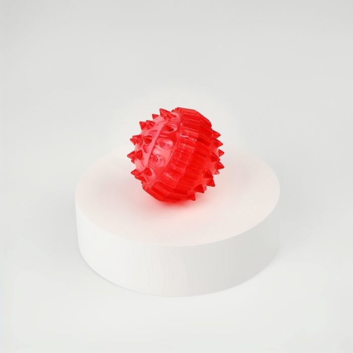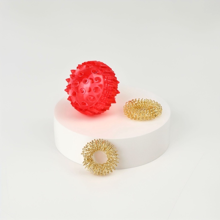 Массажер пластик универс Шарик с 2 кольцами красный коробка ОТ