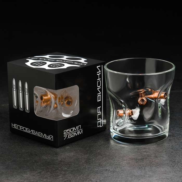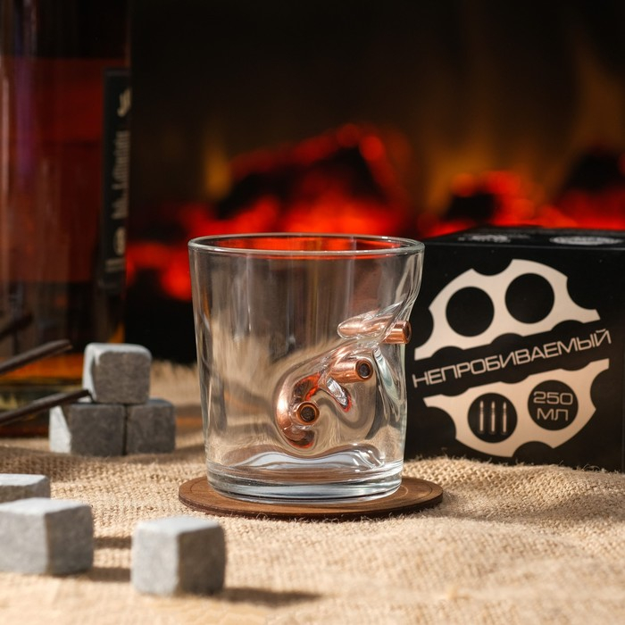 Стакан "Непробиваемый", с пулей, для виски, гравировка, 250 мл
