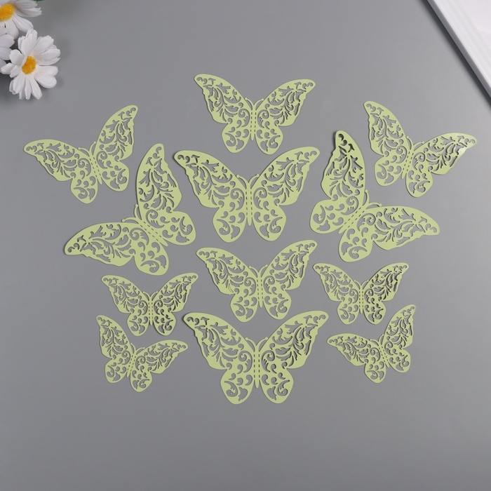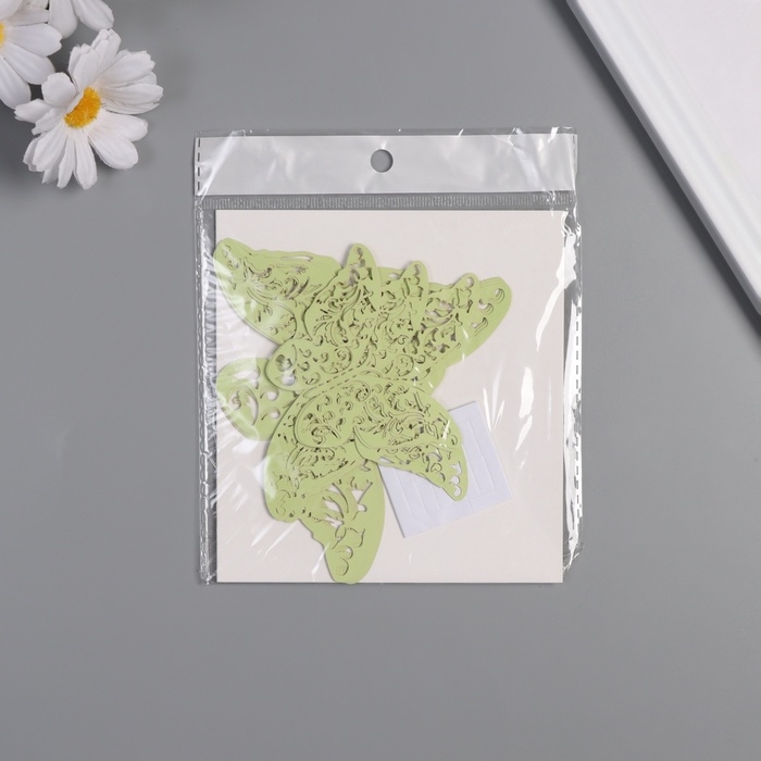 Наклейка бумага "Бабочки с листьями" матовый зелёный набор 12 шт 12 см, 10 см, 8 см