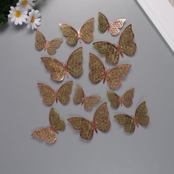 Наклейка бумага, пластик "Цветочные зелёные бабочки" блёстки набор 12 шт 12 см, 10 см 8 см 1052425