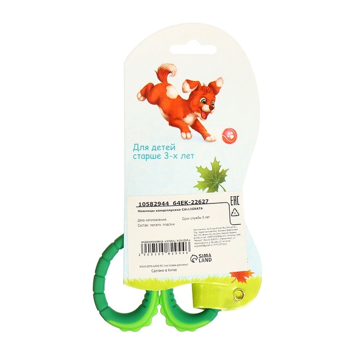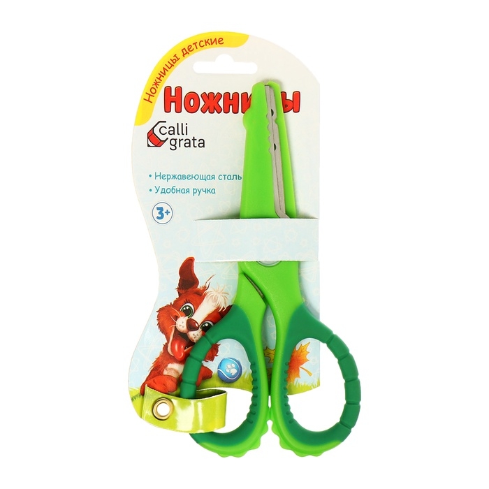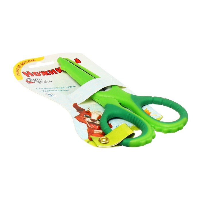 Ножницы 13,5см прорезиненные ручки, закругленные концы лезвий, Крокодил зеленый CALLIGRATA 1058294