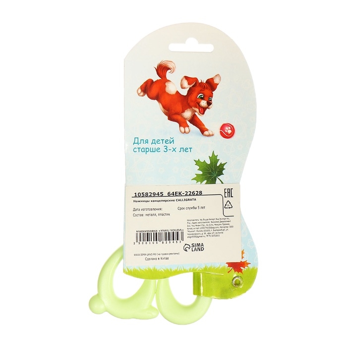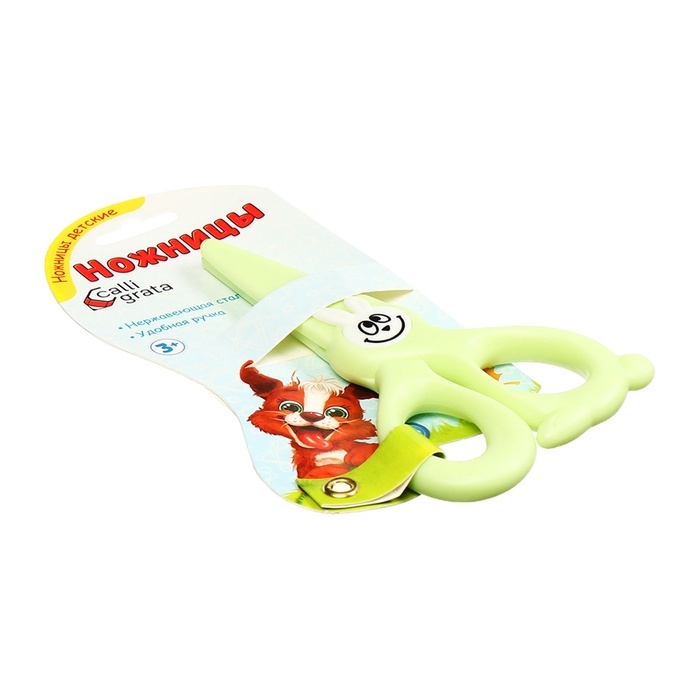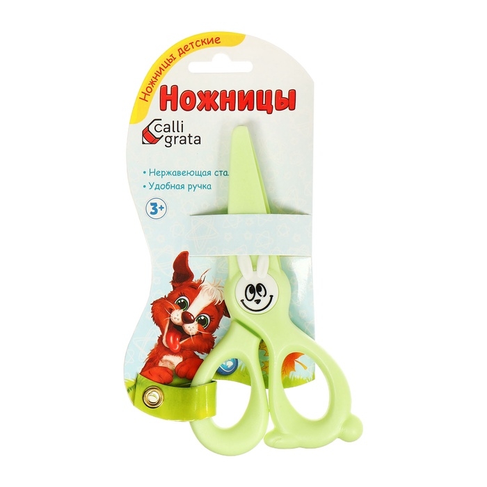 Ножницы 11,8см пластиковые ручки, закругленные концы лезвий, Зайчик зеленый CALLIGRATA